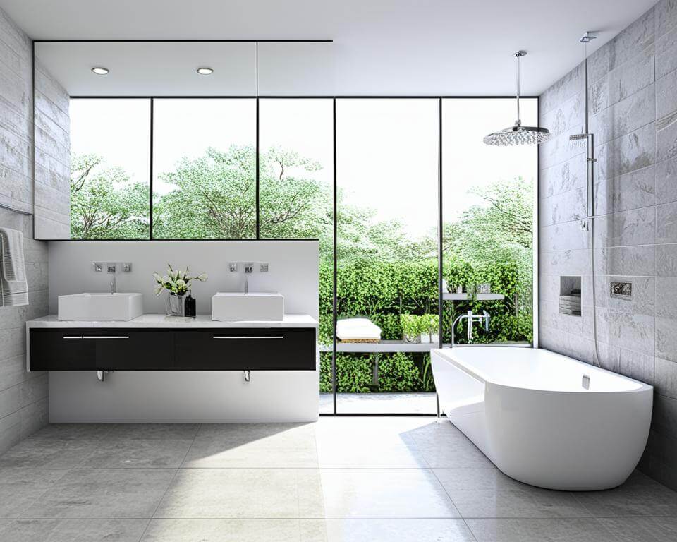 Finishing touches included large-format porcelain tiles for a clean, seamless look and stylish accessories with a touch of greenery. The result is a harmonious blend of modern design and functional elegance.